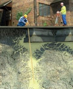 Docelowo prace odbyły się bez wykopów i urobku wokół domu, bez zrywania podłogi i wyprowadzki właścicieli z domu. Nasi technicy w zaznaczonych strefach iniekcyjnych wykonali kilkanaście otworów o średnicy ok 12 mm, poprzez które podali odpowiednią ilość geopolimeru w wymagane miejsca. Podnoszenie posadzki widać było ‘’gołym okiem”.