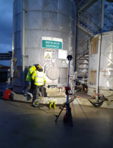 Obiekt stanowią dwa zbiorniki technologiczne. Naszym zadaniem było wzmocnienie gruntu pod silosami. Wysokość zbiorników odpowiednio 3,8 oraz 14,6m. Zbiorniki ze względu na słabe warunki gruntowe zaczęły nierównomiernie osiadać. Nierównomierne osiadanie doprowadziło do znacznego odchylenia od pionu co skutkowało wyłączeniem zbiorników z użytkowania przez UDT.