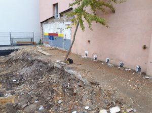 Przeprowadzenie wzmocnień w technologii iniekcji geopolimerowych wzmacniających grunt i podbijających fundament istniejącej ściany budynku. Wykonanych zostało 20 punktów iniekcyjnych pod istniejącą ścianą o długości ok 19.5 mb.